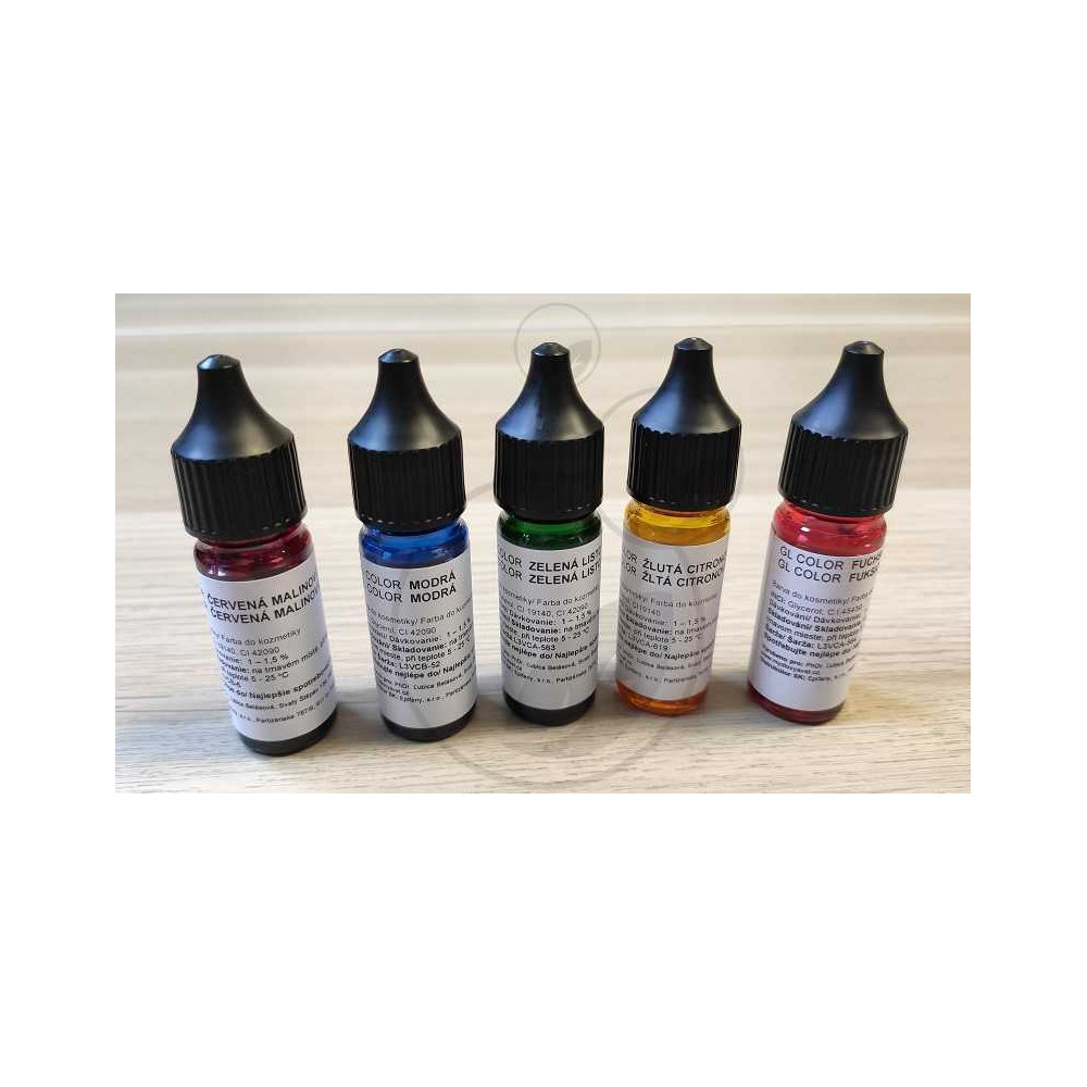 GL COLOR je koncentrovaná tekutá glycerinová barva pro výrobu mýdel z glycerínových mýdlových hmot a kosmetiky - koupelových solí, šumivých bomb, tekutých mýdel, gelů a šampónů, pleťové kosmetiky apod.