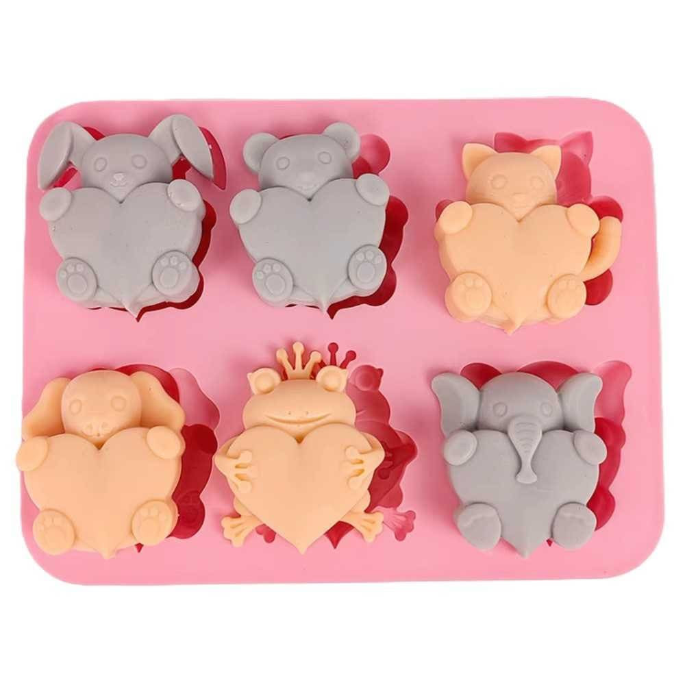 Silikonová forma na mýdlo zvířátka se srdíčkem - 6ks