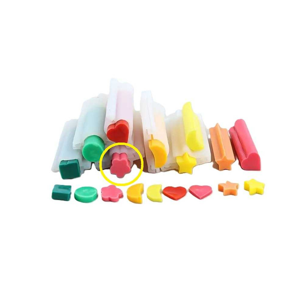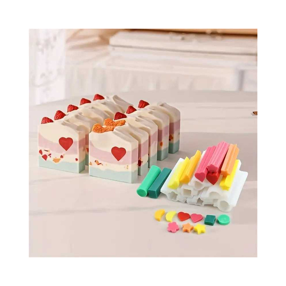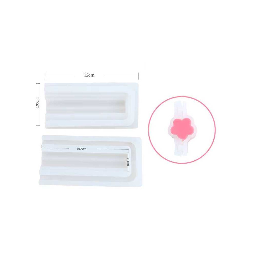 Dvoudílná silikonová forma na výrobu odlitků z glycerinových mýdlových hmot nebo vosku. Odlitek se pak může celý zalít do většího mýdla a po ztuhnutí se mýdlo příčně nakrájí. Nebo se může rovnou nakrájet na menší části, které lze použít jako dekoraci nebo v případě voskového odlitku i jako vonný vosk.