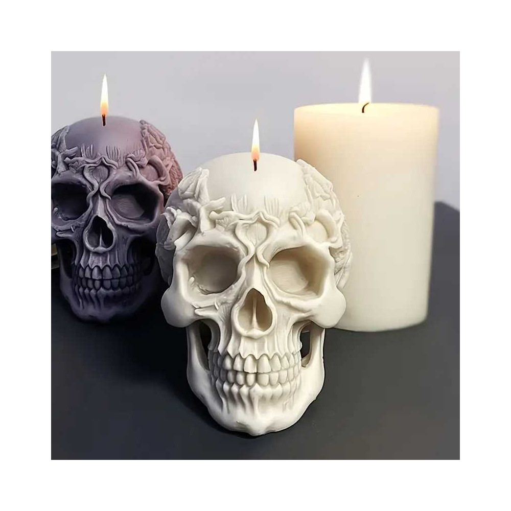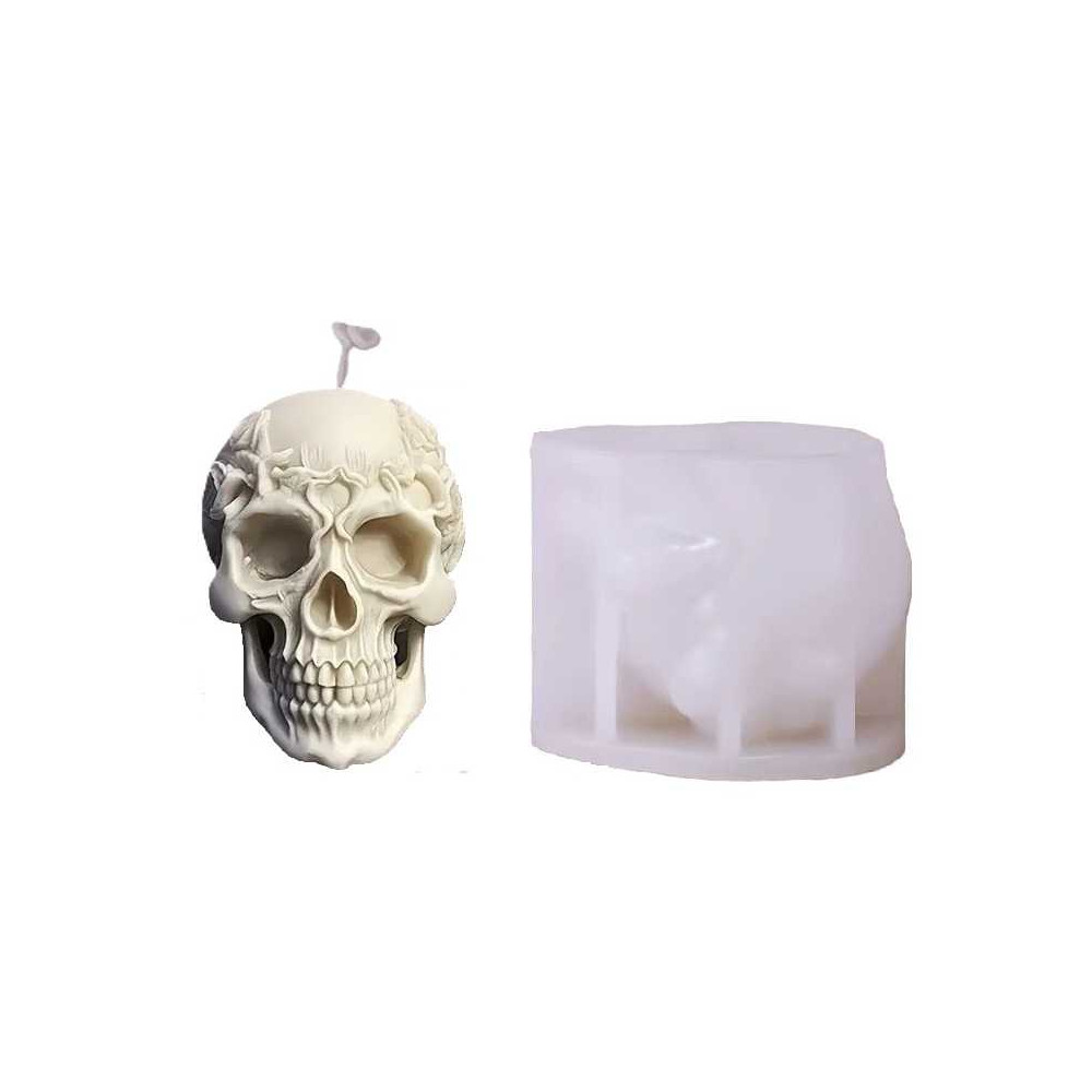 Silikonová forma na mýdlo a svíčku lebka s květinami