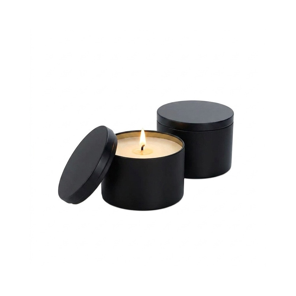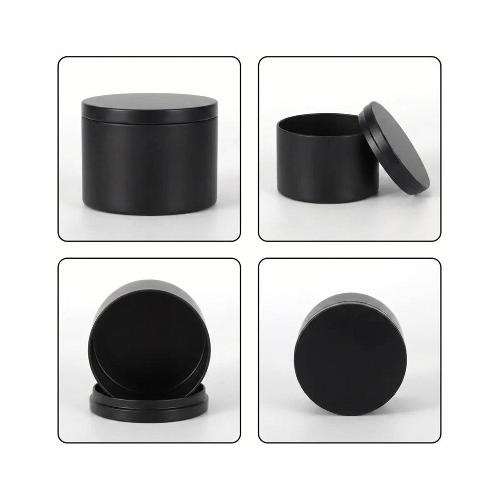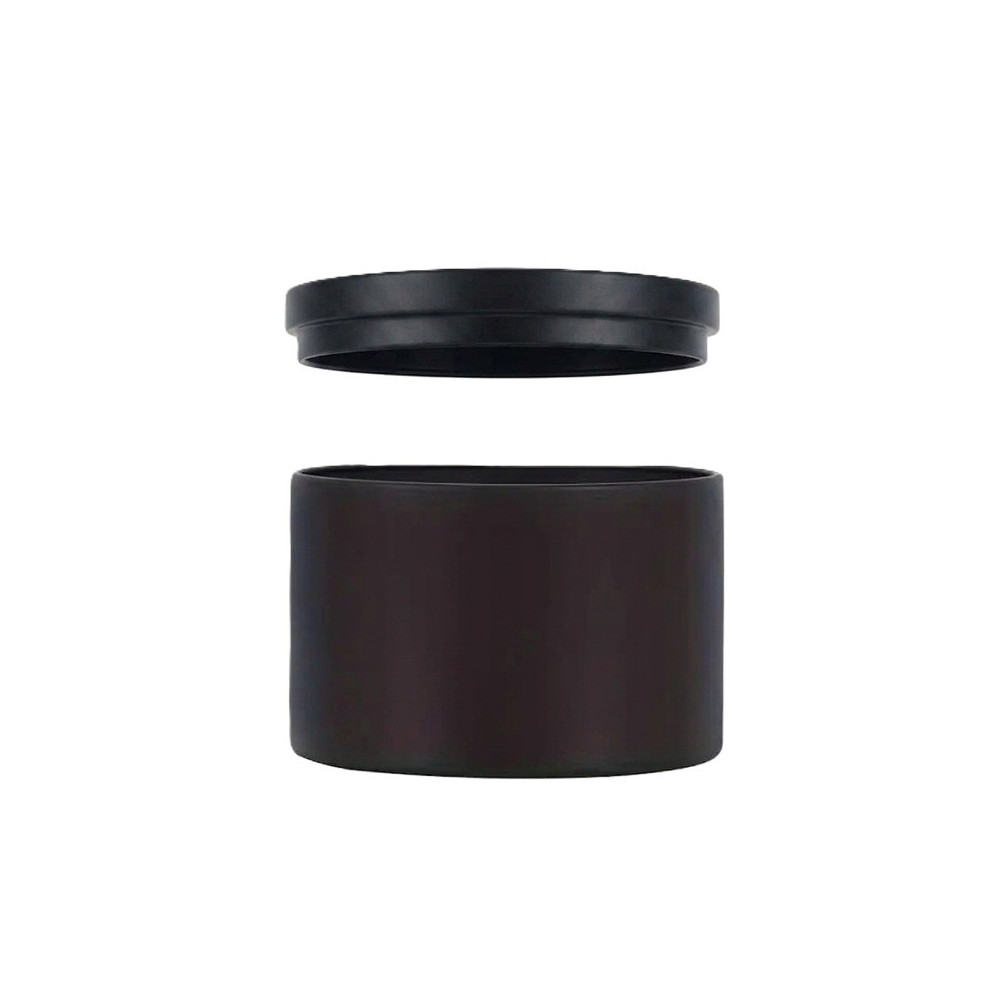 Plechová dóza na svíčky průměr 6,5cm, výška 5,2cm, dóza černá, víčko černé.